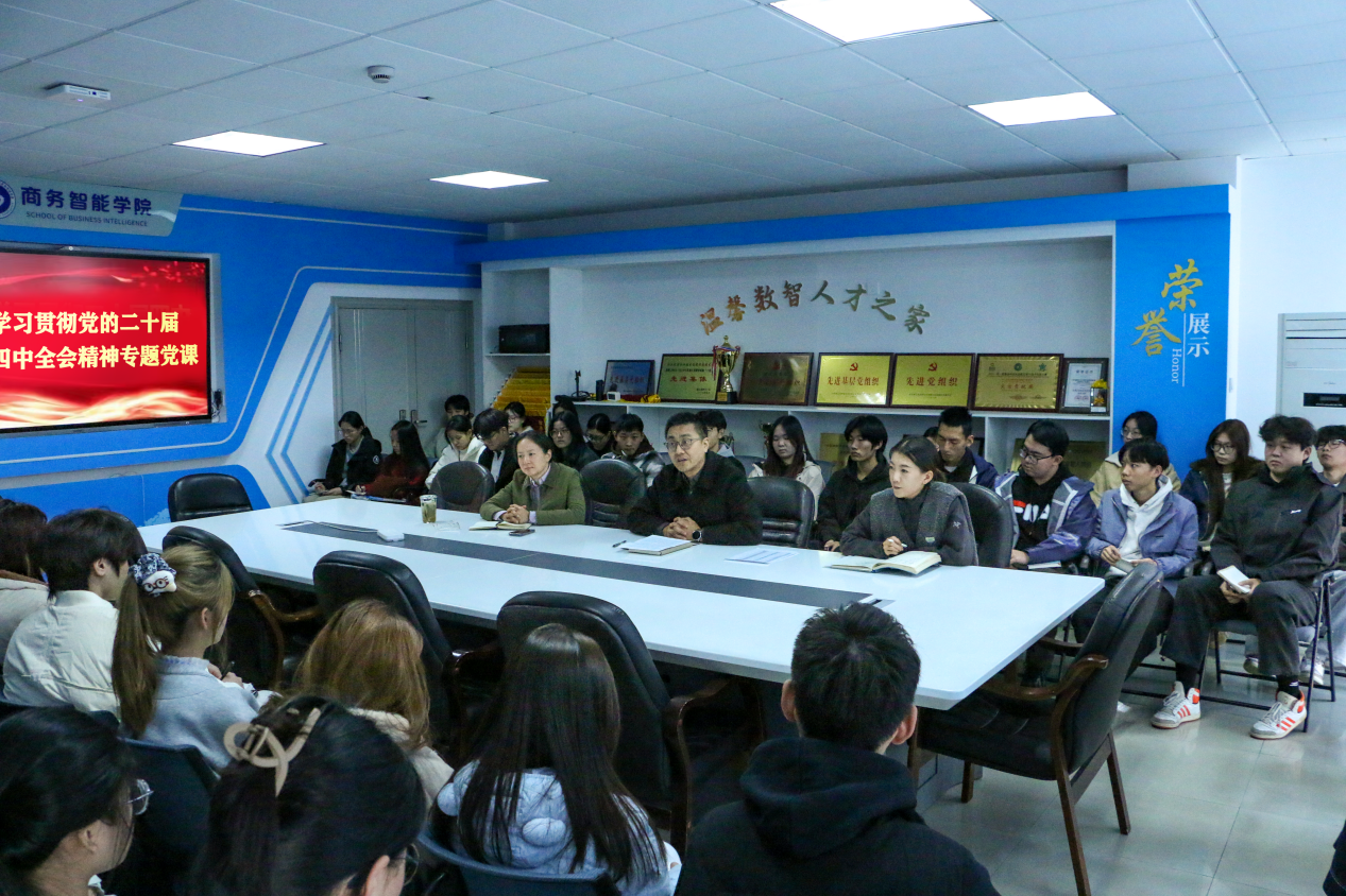 为深入学习贯彻党的二十届四中全会精神,深刻领会国家“十五五”规划建议的战略部署,引导广大学生将个人理想融入国家发展大局,11月25日下午,学校党委委员、副校长林锋为商务智能学院学生讲授党的二十届四中全会精神专题党课。