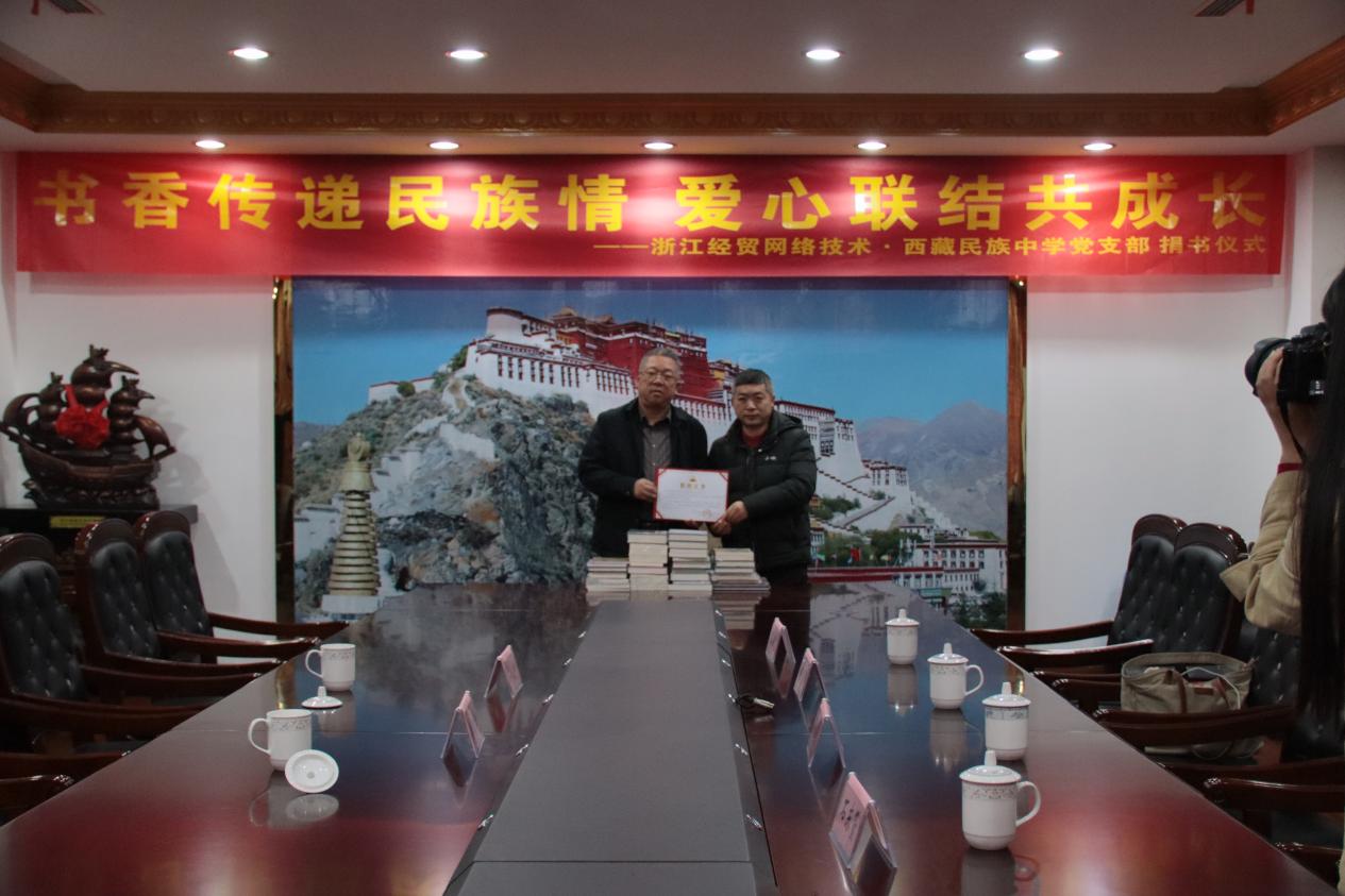在随后举行的捐书仪式上,计算机网络技术党支部向西藏民族中学捐赠了一批涵盖网络安全、爱国主义教育、文学经典、科普知识等类别的图书,共计50册。这批图书不仅丰富了学校的藏书资源,也传递了学院党员对民族教育事业的支持与关怀。
