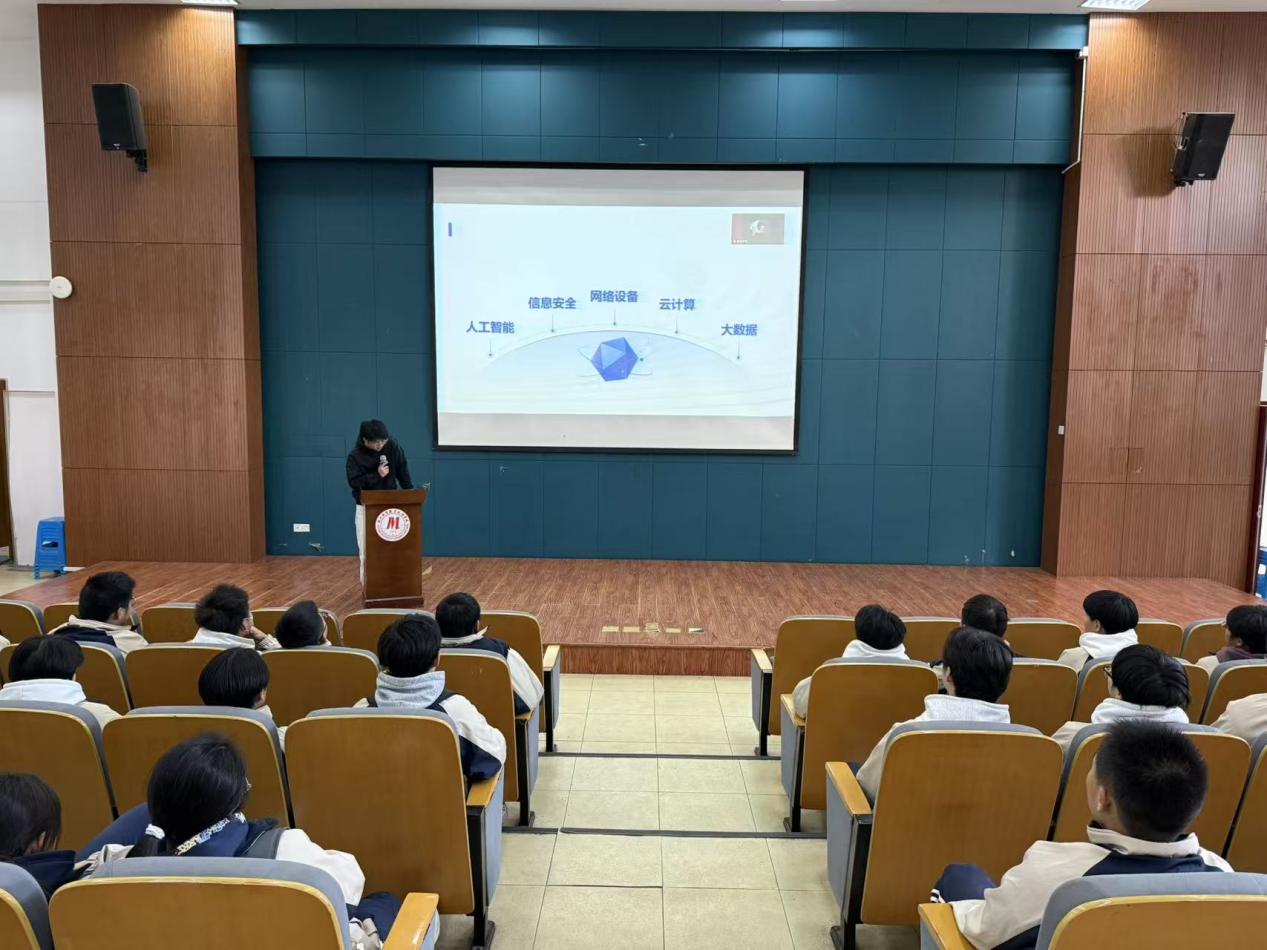 为进一步深化职业教育衔接合作,拓宽中职学生视野,增强其对高等职业教育的认知与学习动力,12月4日,在余姚市第四职业技术学校副校长陈汉东、教务处主任祝利剑、团委副书记金杰及网安专业负责人魏炎斌、专业教师施婷婷、张李哲的带领下,114名2023-2025级网络安全专业学生,赴我校开展中高职一体化人才培养交流活动。浙江经贸职业技术学院商务智能学院热情接待了来访师生。