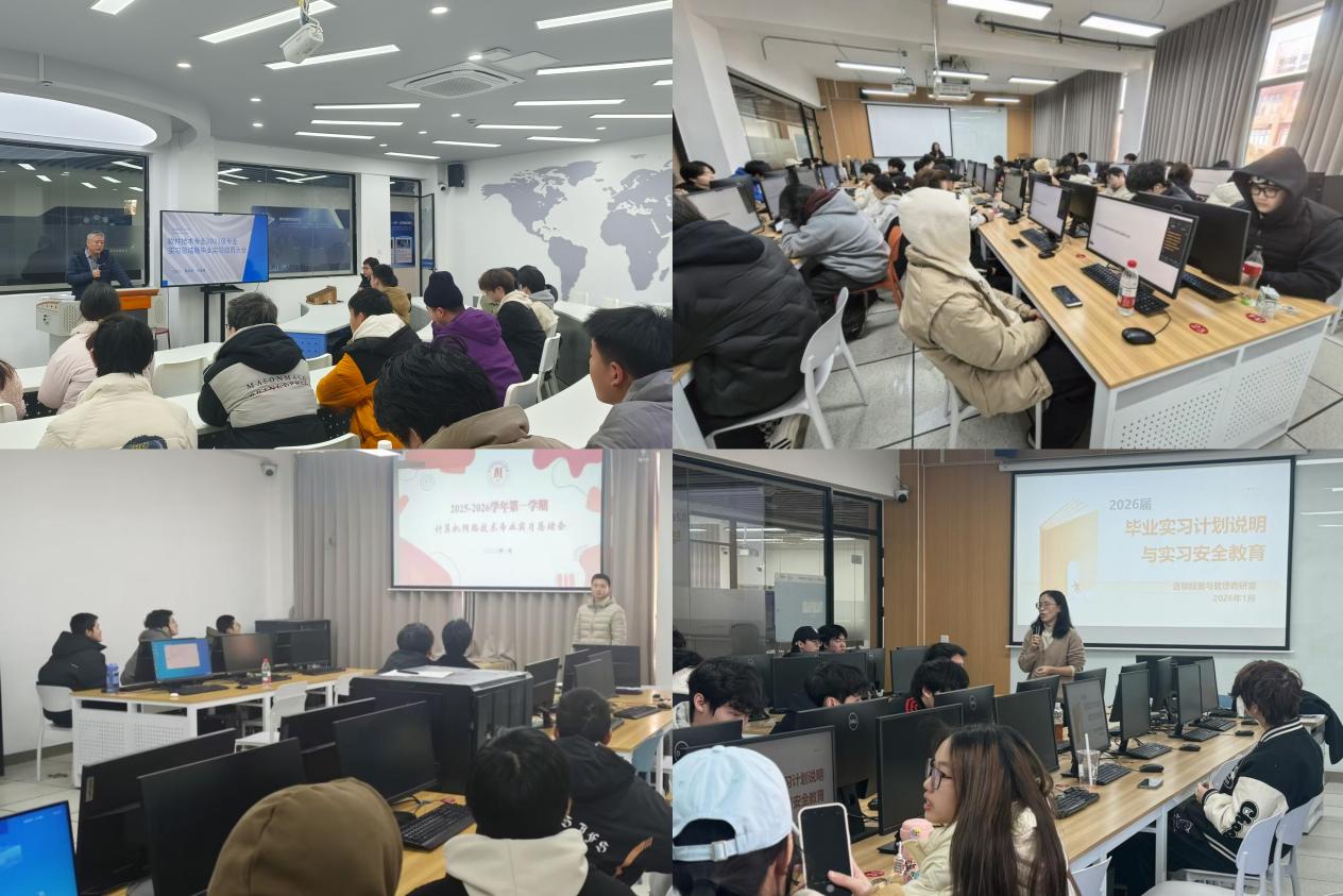 本次专业实习学生近千名,覆盖百余家企业单位,包括政采云股份有限公司、杭州壹网壹创科技股份有限公司、浙江省数据安全服务有限公司、新华三未来工厂、杭州海康机器人股份有限公司等知名企业及其生态企业,以及众多中小微企业和初创公司,为实习学生提供了多元化、实战化的成长平台。在实习过程中,绝大多数同学展现出良好的职业素养和专业能力,他们积极融入企业环境,主动承担工作任务,在真实业务场景中锤炼了沟通协作、问题解决与岗位适应能力,整个实习成效显著,帮助学生顺利完成从“学生”到“职场人”的身份转变,为学生迈向职场关键一步奠定了坚实基础。大会上各个专业总结了专业实习的优秀做法并表彰了表现突出的优秀实习生代表,同时对下学期即将开展的毕业实习进行了系统动员与详细部署,包括安全教育、过程管理、成果要求、材料提交、就业衔接等方面,助力学生安全毕业实习与顺利就业。